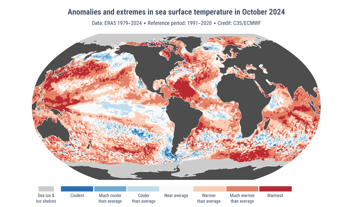 The latter part of that statement is significant because 1.5°C above pre-industrial levels has been the ceiling number the Paris Climate Agreement has strived to keep the world beneath. Instead, the new report from C3S says 15 of the past 16 months have averaged above that threshold with October 2024 blasting above it at 1.65°C above pre-industrial levels.