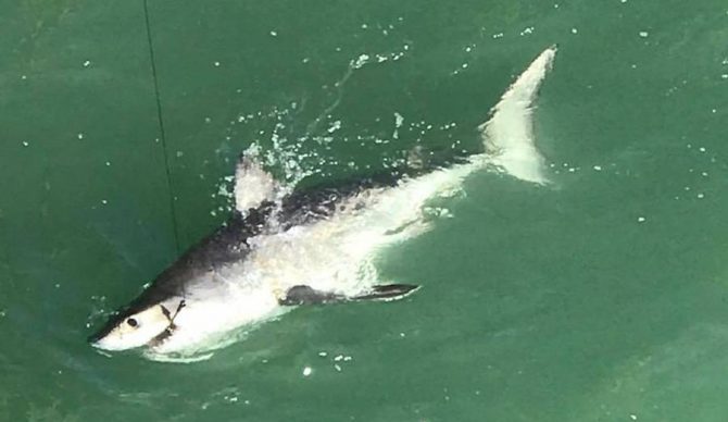 A local fisherman nearly reeled in a juvenile great white off of HB Pier Tuesday, prompting officials to issue a shark advisory along a stretch of the beach. Photo: Huntington Beach Marine Safety Division