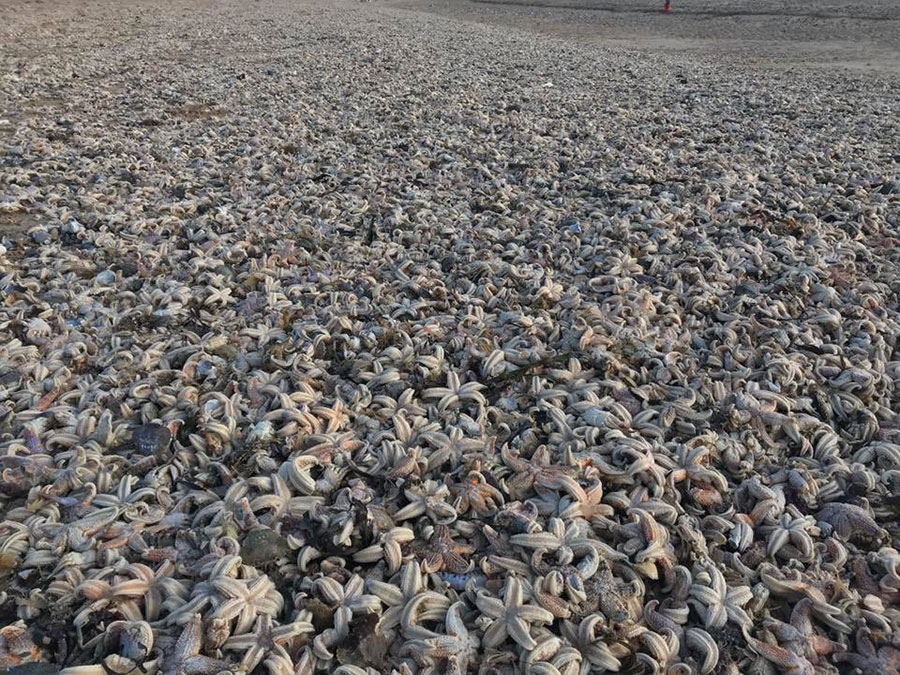 Mass starfish strandings aren’t completely unheard of. For example, several million were found on the coast of Worcester County, Maryland, USA in 1960. Up to 10,000 were found along the strandline on the Isle of Man in the British Isles in 1999. And 50,000 were stranded on the Irish coastline in 2009.