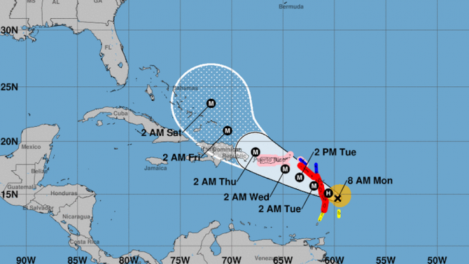 As of 8 a.m. Monday morning, Hurricane Maria, currently spinning in the Atlantic, has become a category 3 storm and is forecast to hit the Leeward Islands later today, and later this week Puerto Rico.