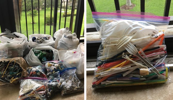 Tired of seeing trash on the beach every day, I decided to go for a walk in front of my house and collect trash again. I walked about three blocks north to the Jupiter Inlet and in just one hour was able to fill an entire garbage bag with marine debris. The issues surrounding ocean pollution and single use plastics were suddenly brought back to my attention. I went out the next seven days on that same beach and collected marine debris. And unlike the last time when I wanted to bring attention to the major problem of ocean pollution, I decided I would first sort through everything I collected and classify it into categories. Pictures can tell 1,000 words, but numbers don’t lie, so I figure I’ll present both.