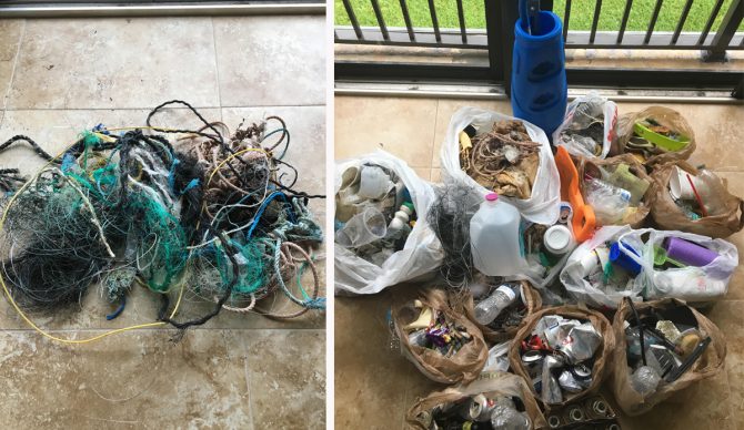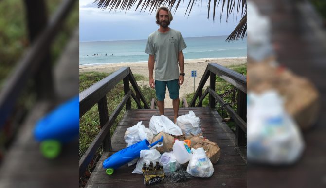 One day last fall I was walking off the beach and couldn’t help but notice large clusters of marine debris on the beach. The wind had been blowing consistently for about a week and the onshore flow had brought in a lot of pollution. In between sessions I went back to the beach with a garbage bag and began picking up trash. I walked three blocks in an hour and filled a large garbage bag with an assortment of marine debris. I made a post on my Instagram account of the trash I found, which included mostly single-use plastic items, to try and raise awareness. To no surprise, I didn’t receive much of a reaction.