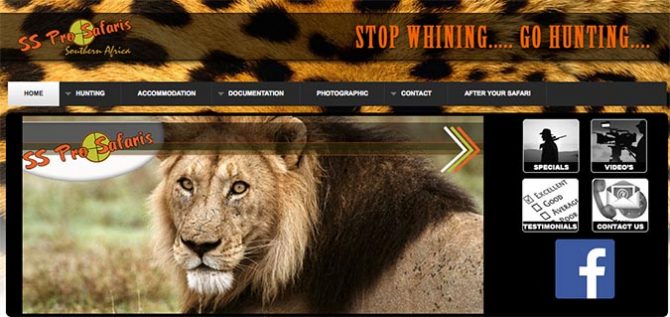 Van Zyl ran the hunting outfitter SS Pro Safaris in the “foothills of South Africa’s Waterberg Mountains.” The words “Stop Whining, Go Hunting” are written in bold letters across the top of the site and a Youtube video on the homepage opens with a hunter shooting a large jaguar as it charges someone with a gun in the bush. A number of scenes show jaguars being killed at night while eating meat hung from a tree as bait. According to reports, Van Zyl’s death was among a number of fatalities from crocodiles in 2017.