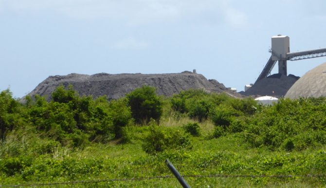 A five-story coal ash pile next to the AES electric power plant in Guayama, Puerto Rico. Photo: Lloréns