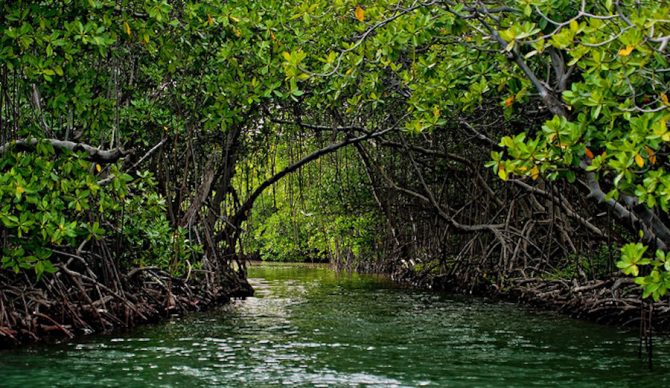 Coastal mangrove forest in Puerto Rico. Mangrove forests provide habitat for many species of fish and shellfish. Ricardo Mangual/Flickr, CC BY