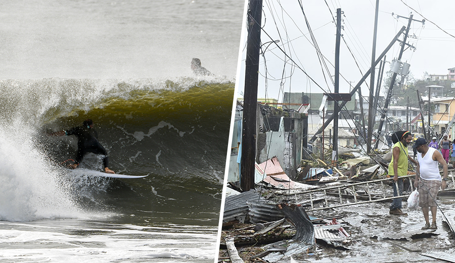 Take the hurricanes of 2017, for example. Hurricane Irma spelled destruction for a host of Caribbean nations, and Puerto Rico is still recovering from the effects of Hurricane Maria – both of which radiated sizable surf to the northernmost nooks and crannies of the Eastern Seaboard. Moral questions about reveling in the playful surf spun up by a storm that is also tearing homes apart abound.