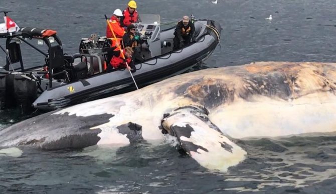 Fisheries and Oceans Canada, the Marine Animal Response Society, the Canadian Coast Guard, and other organizations hope to bring one of the whale carcasses to shore to perform a necropsy in order to determine a cause of death. If scientists can infer a common cause of death, they can make policy recommendations in an effort to protect further deaths of the protected species.