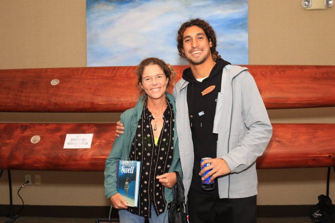 Liz Clark, who just put out a new book, and Cliff Kapono gave impassioned speeches. Photo: Nikki Brooks/Save the Waves