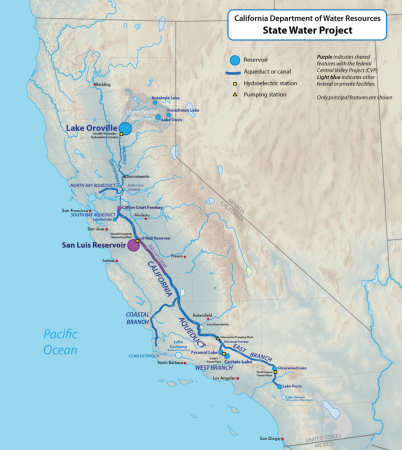 The State Water Project stretches nearly 2/3 the length of California. Photo: Wikimedia Commons.