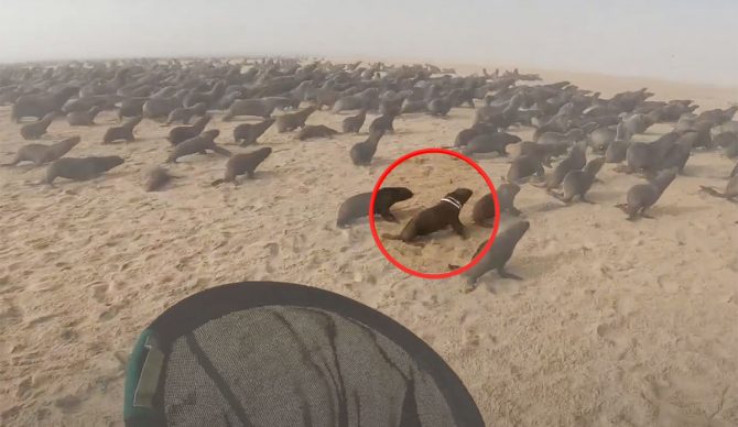 The seal in the video you see here clearly wasn’t able to resist the temptation. Luckily, though, Ocean Conservation Namibia workers spend much of their time chasing seals who’ve managed to get themselves stuck in the stuff we’ve carelessly tossed away.