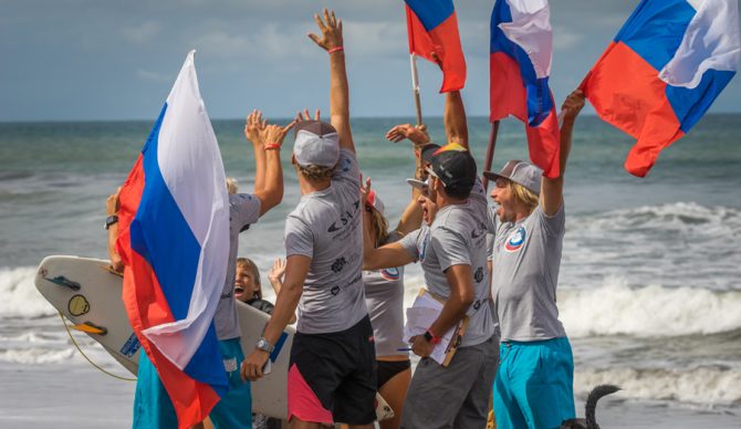 Russian surfers are used to paying for the faults of their country. After the state-sponsored doping scandal came to light in 2016, Russian surfers were unable to represent their country or fly their flag at ISA events. They instead competed for a federation – the “Russian Surfing Federation.”