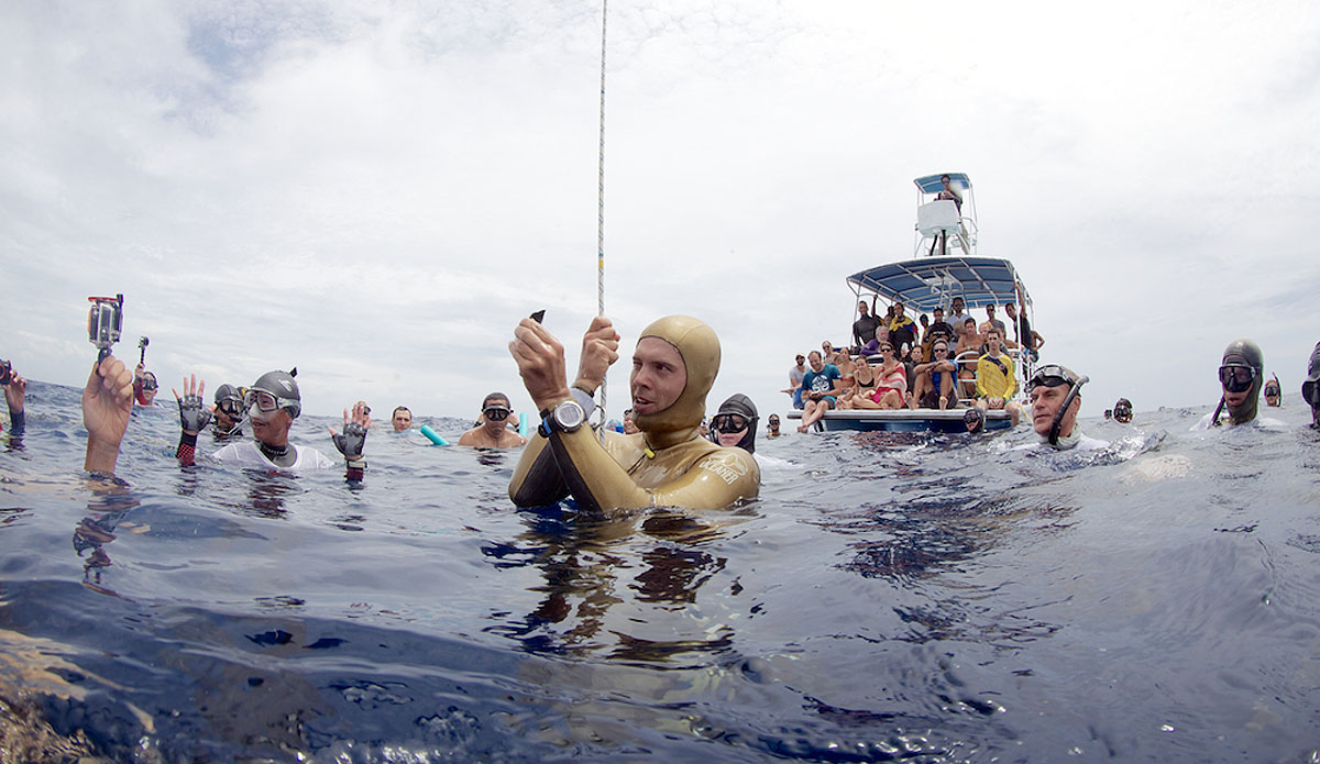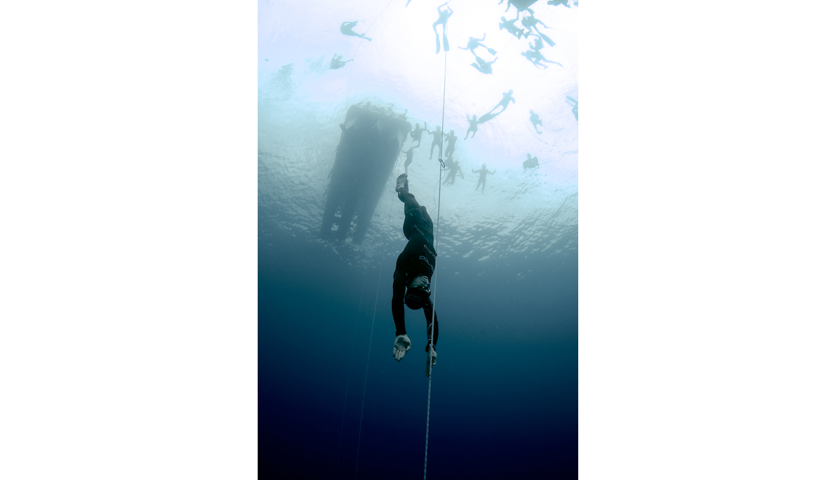 In the actual competition, Russia’s Alexey Molchanov took home top honors for the men, while Australia’s top freediver Christina Sáenz de Santamaría got the job done for the women. Alexey is a world record holder in Constant Weight (using the mono fin), and completed the deepest dive of the competition, 123 meters, which is five meters short of his record. As a side note, Alexey’s 50-plus-year-old mother, Natalia Molchanova, is the world’s best female, and keeps smashing records every year—she can also hold her breath for 9 minutes and 2 seconds – a record that Alexey thinks he can beat this year, so put that in your pipeline and smoke it!.