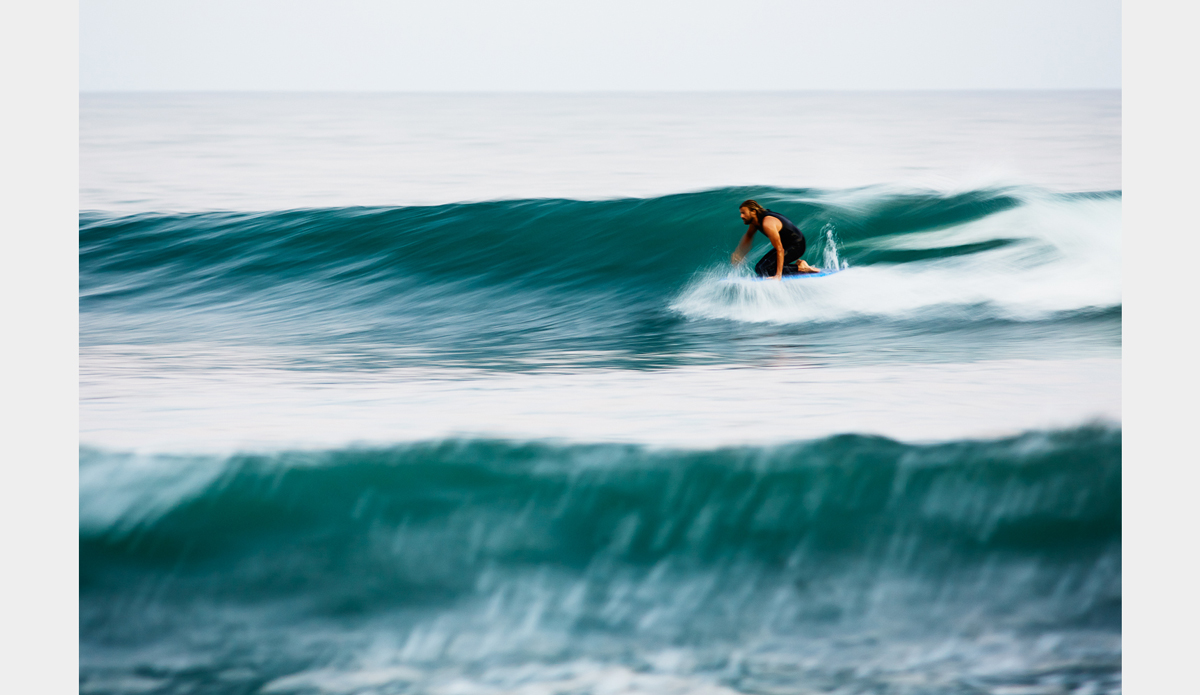 I recently bought a fluid head tripod primarily used in video work, and wanted to use it for slow shutter photography. Needless to say I went into shooting blurs with an extremely false sense of confidence. Thinking I had the killer setup, I assumed that all would be well — just spray and pray! Wrong. It is the most difficult thing I have attempted in surf photography aside from in-water shots. Shooting blurs, I prefer a shutter speed anywhere from 1/8th down to 1/4th of a second. You must track the subject perfectly through the viewfinder.