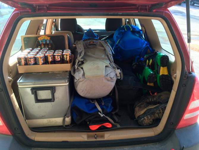 Fully loaded, we of course brought only the essentials on the drive from Anchorage to Valdez. Photo: Ian Bolliger