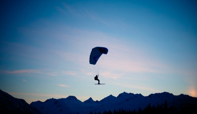 We were admiring the scenery on our last day in the Chugach when we heard the loud rip and pop of a parachute opening and saw this speed flier coasting to a stop in the neighboring parking lot. That’s Valdez for you… Photo: Spencer James