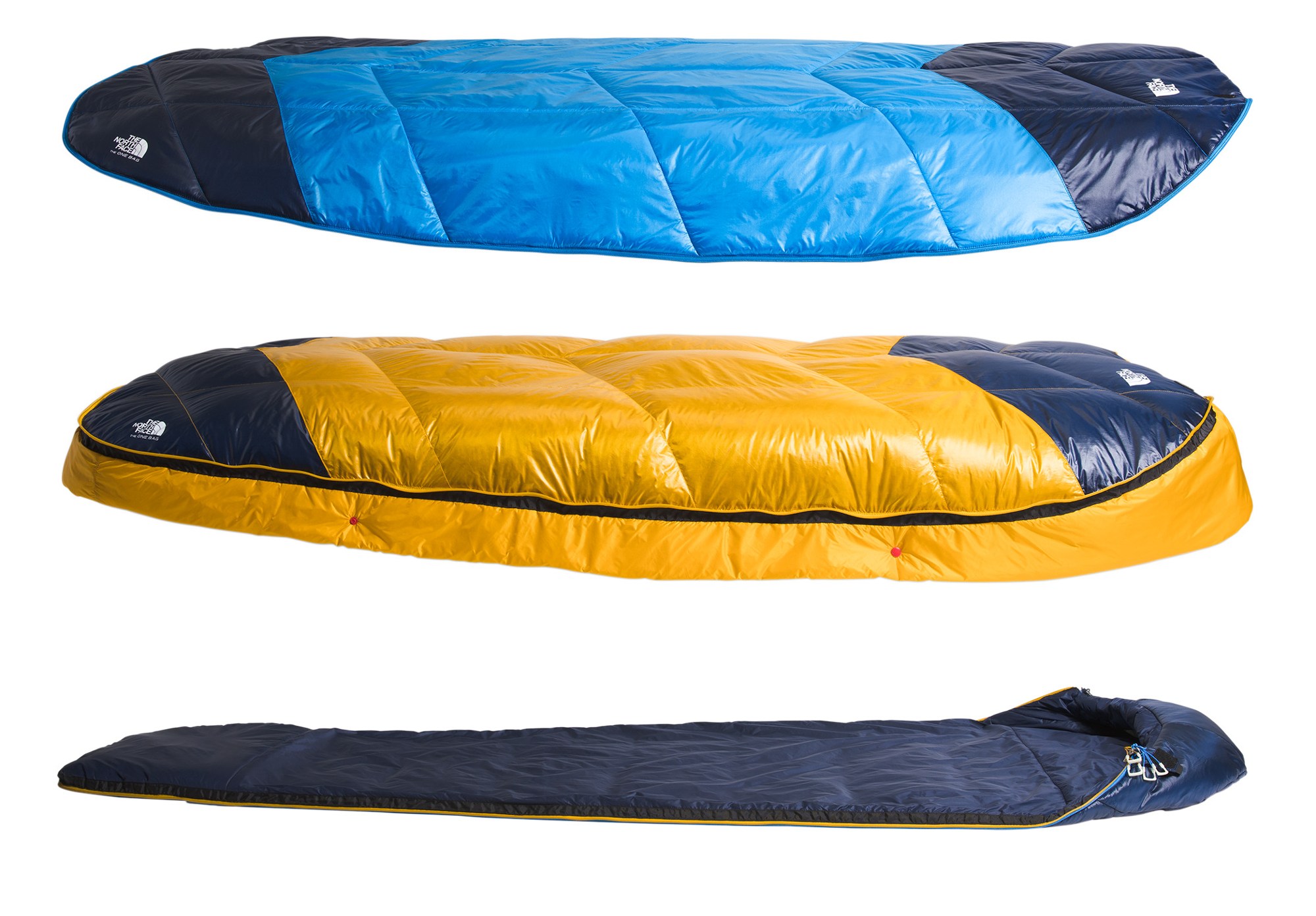 | The North Face One Sleeping Bag | $350 | Synthetic and 800 Fill Down | 3 lbs 13 oz | 17.5 L, 13.5 L, 9.1 L | Mummy | 40° F, 20° F, 5° F |