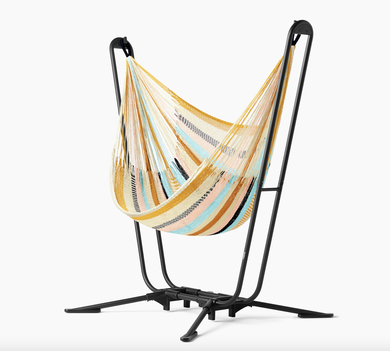 The Yellow Leaf Vista + Hammock Chair is one of the more unique hammocks on our list. In short, it’s a portable hammock stand and a hammock chair. Because it’s a full hammock stand, it is bulky but still small enough to pack for beach days or car camping trips. And it’s worth it because the hammock chair is insanely comfortable.