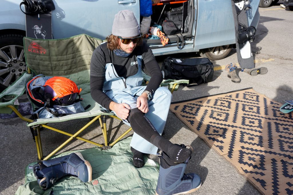 Nathan Lemin also took on snowboard sock testing. A lifelong rider and gigantic sock snob, Lemin is a huge advocate for prioritizing contact points while on adventures. Happy feet make for fun adventures, and snowboard socks are no place to skimp.