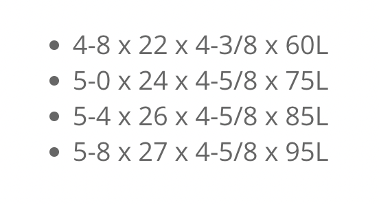 Available Sizes (Liters): 47, 52, 58, 70, 85, 100, 115, 140