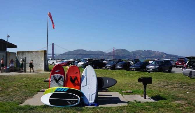 Some of the boards we tested for this review, on a sunny testing day at Crissy Field. Photo: Will Sileo//The Inertia