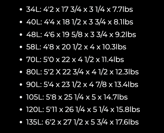Available Sizes (Liters): 34, 40, 48, 58, 70, 80, 90, 105, 120, 135