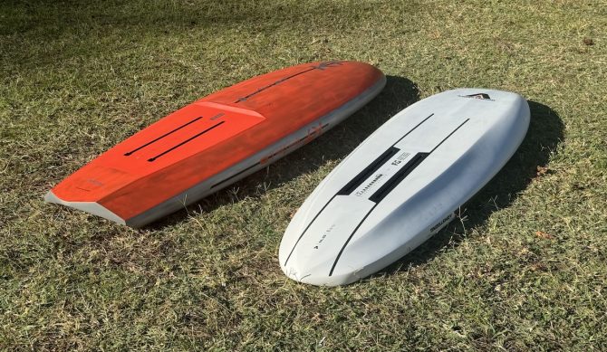 Nose Shape: This one actually has a lot to do with length and swing weight, which is why we’re tacking it on here. A board with a trimmed-down and pointier nose will cut through the wind better than a board with a flat nose shape, making for less “swing weight” and easier turning.