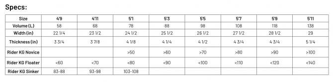 Thickness: Thicker boards float better, but too thick without enough corresponding length and width will be “corky,” sitting too high out of the water, unstable, and hard to start on.