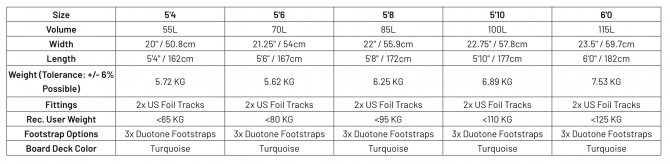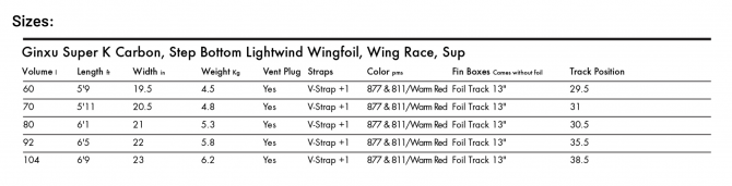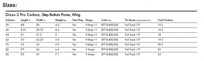 | F-One Rocket Wing S | (60L): $1,509 | 20, 24, 32, 36, 42, 48, 50, 54, 56, 60, 70, 80 | Bamboo, Carbon | Concave deck, extra volume in the nose, narrow width, added volume for 2025 |
