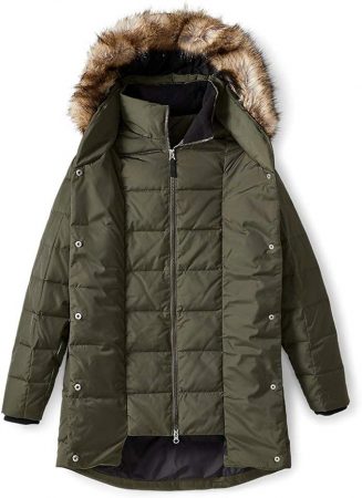 | Eddie Bauer Women’s Yukon Classic Down Parka | $299 (on sale for $179) | Relaxed | No | Thigh | N/A | 650 fill-power down insulation |