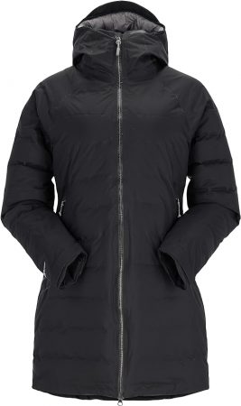 However, be warned: the fabric readily shows dirt and smudges, requiring more care to maintain its pristine, deep, and dark appearance. Dog hair is, however, repelled. If that’s a concern for you, we recommend checking out Rab’s Women’s Cubit Stretch Down Parka, for another recycled down option, that is a little more forgiving as far as showing dirt and wear. This jacket also excels as a piece for hitting the slopes during cold days with limited moisture in the air, being super light, mega-packable, warm, and sleek. A true winner for a long-fitted puffer. Minor caveats aside, the Stretchdown Parka stands out as a technical offering, with exceptional warmth and impressive packability in a sleek, full-length silhouette.