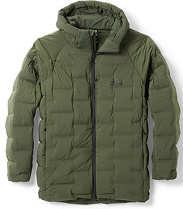 | Mountain Hardwear Stretchdown Parka | $340 | Hip | 26 oz | 700-fill goose down | 86% nylon, 14% elastane |