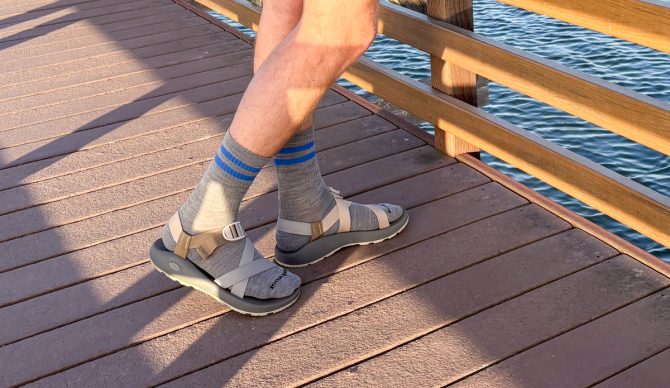 The Chaco’s Z/1 sandals don’t have a toe-loop, for easy socks n’ sandals comfort. Photo: Dylan Heyden//The Inertia