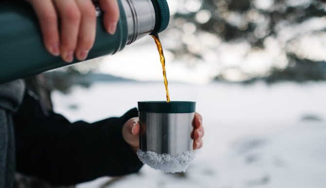 A hot drink, or even just looking forward to one, can radically increase warmth while playing in the snow. Photo: Jonas Jacobsson // Unsplash.