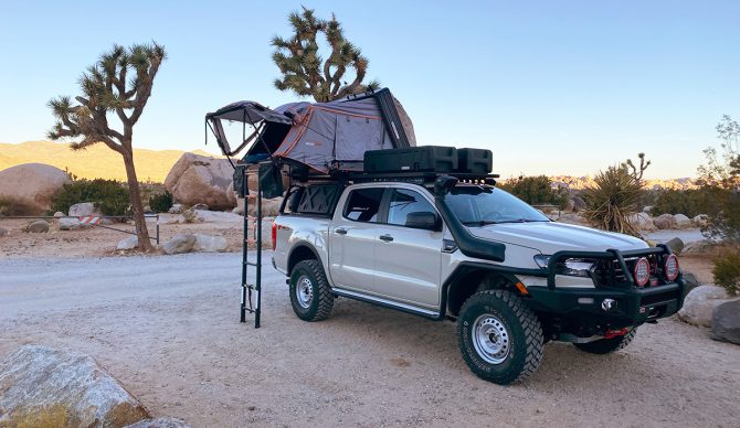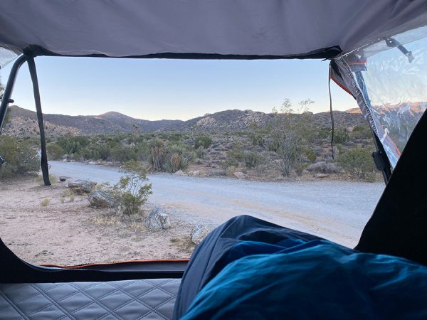 To give the Condor 2 a proper test, I took it to Joshua Tree National Park where nighttime temperatures hovered in the high 40s with daytime highs in the 70s. Using J-Tree as a testing ground had two distinct benefits. First, it takes a few hours and several freeways to get out to the desert from my home base in coastal SoCal, so it was great to get a feel for how having a fully-loaded roof affects your drive. Second, the temperature fluctuations of the desert make for competing demands. At night, you’ll want a sleeping arrangement that’ll keep you warm, but as temperatures start to climb, shade and ample airflow to stay cool take priority.