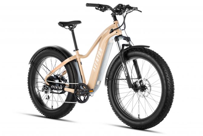 As elegant as it is rugged, the Aventure is the most powerful and versatile ebike Aventon has ever designed. A front suspension fork and fat tires bring exceptional handling, while integrated fenders and lights ensure visibility to others and protection from the terrain below you.