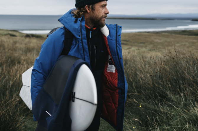 The pinnacle of Finisterre’s outerwear range, the Vellus Parka is built to protect you in the wildest weather. Boasting the brand’s highest waterproof rating and filled with down-free recycled insulation, the Vellus is designed to handle anything nature can throw at you. It’ll keep you warm and dry as you wait on the headland for waves to arrive, and it’s packed with features to get you out there in the face of the elements like a plethora of pockets, a fleece-lined hood, and internal, elasticated cuffs to seal in the warmth and prevent drafts.