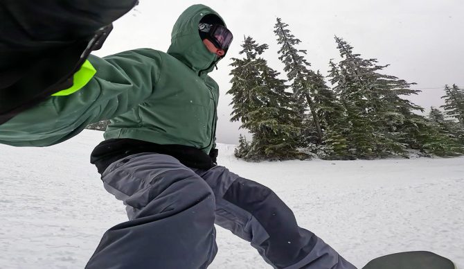 The Trew Gear Tatoosh Bibs were at home in the PNW, even during a snowstorm that quickly turned to rain. Photo: Steve Andrews/The Inertia
