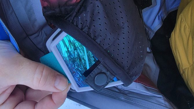 The interior stash pocket, unlike other jackets, has a button closure to keep your goggles secure, for easy defogging when you need it most. Photo: Steve Andrews/The Inertia
