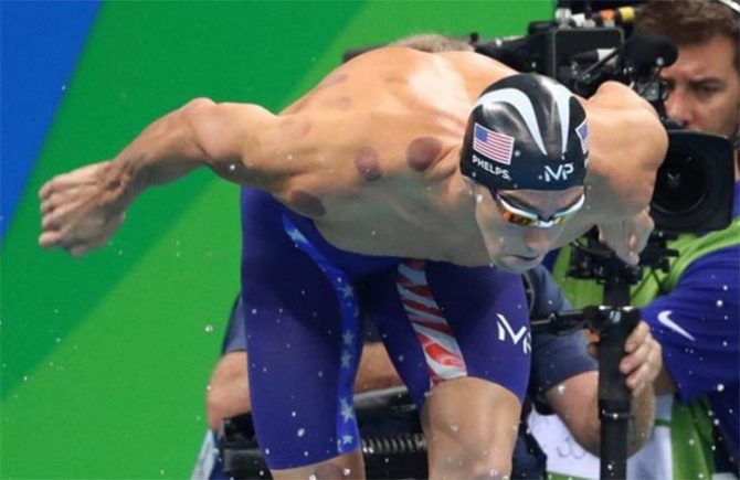 There were a lot of constants in Michael Phelps’s appearances so far in his final Olympics in Rio de Janeiro. The ever-present headphones, the focused stare (despite the antics of would-be foil Chad le Clos) and the impossibly long arms flapping back and forth like a bird of prey before each race start. Yet there was also a striking difference – those red circles that popped up on one of the 26 Olympic medal winner’s shoulders before his first race and then, as the competition progressed, spread to the other shoulder and across his broad back. This left the social media sphere all a-twitter about what the heck was going on behind closed doors. What was Phelps doing to himself to leave such marks?