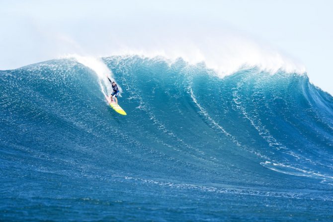 Paige Alms pushes the limits at the 2018 Pe’ahi Women’s Challenge. Photo: WSL/Cestari
