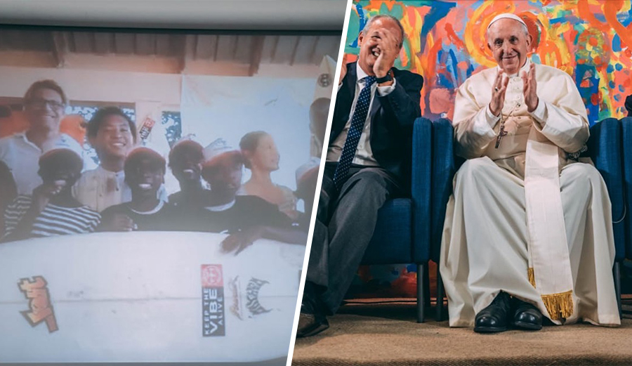 The Pope blesses Mozambique’s Tofo Surf Club. Photo: Courtesy of Surfers Not Street Children