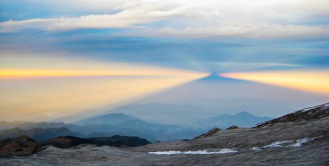 The most incredible moment — sunset at high camp, when the mountain cast a perfect triangle of a shadow on the Mexican land.