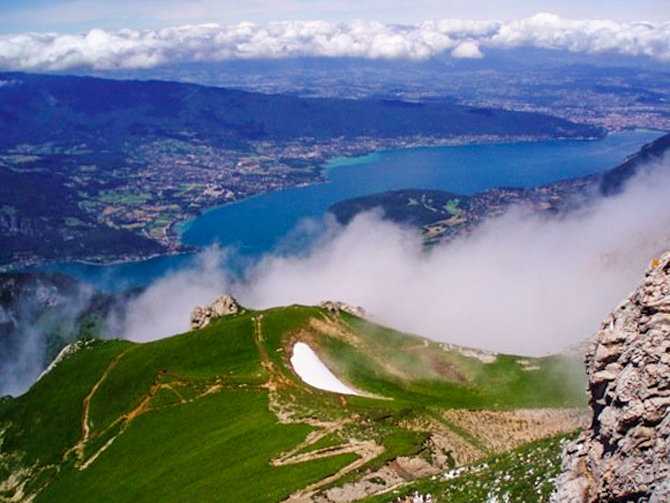 This lovely mountain is perched on the eastern shore of Lake Annecy in Haute Savoie above the 11th century Benedictine priory where I was living — from her summit one can see Mont Blanc clearly. I never climbed her from the lake; we’d drive up to the Chalet de L’Aulp, an alpine cow hut, and hike from there.