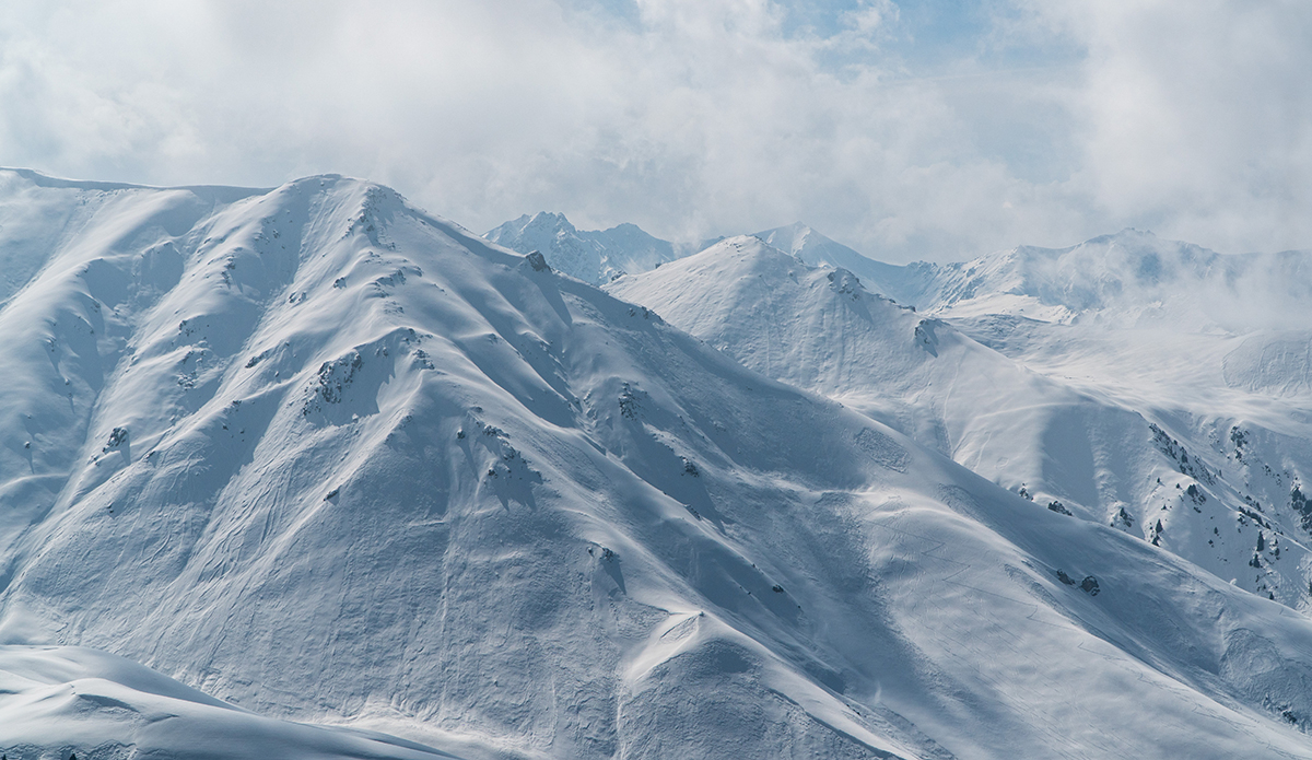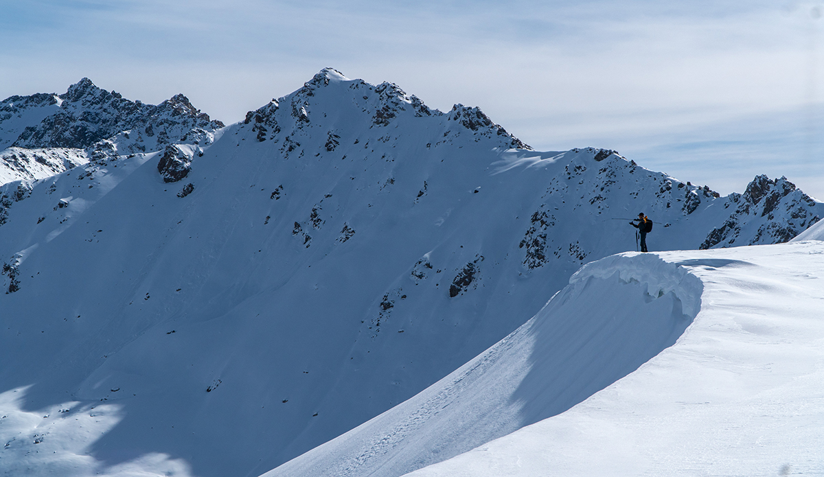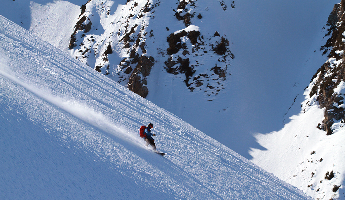 I still find it difficult to describe the snow in the Tian Shan. One thing I can say for sure, is that it is unlike any other place I’ve been. It’s a shallow snowpack averaging about three feet per season. The majority of which comes from moisture picked up from Lake Issyk Kuhl as storms roll over and crash into the Tian Shan. It’s also cold, which sent alarm bells ringing in the heads of all of us avalanche nerds. Cold and shallow equals FACETS, the nightmare snow grain that haunts every backcountry skier and snowboarders’ dreams. The entire snowpack consists of facets and depth hoar, some as large as seven millimeters, where you can see the cupping and striation with the naked eye. The saving grace is it’s rarely windy and storm totals don’t often amount to more than 10 centimeters, meaning there usually isn’t a slab on top of all that sugar snow. Riding with speed is your friend, and the unconsolidated snow meant you could get face shots on demand, All Day Every Day. “Never not powder,” as we say.