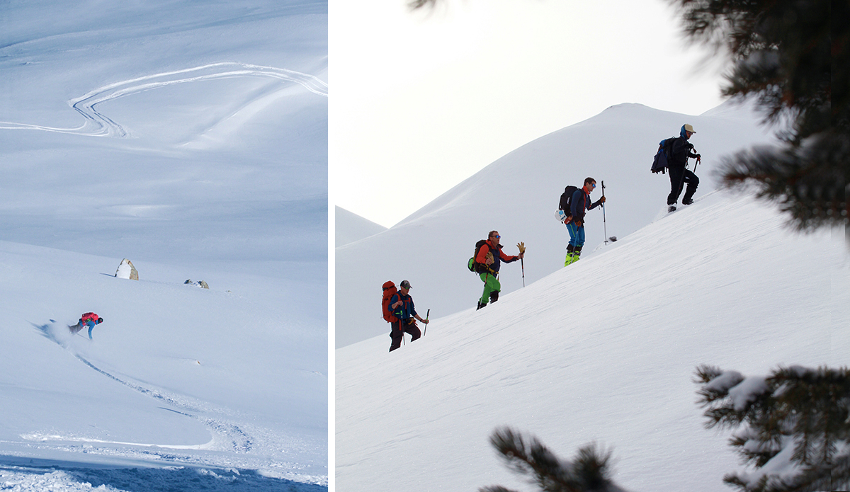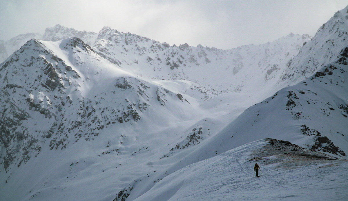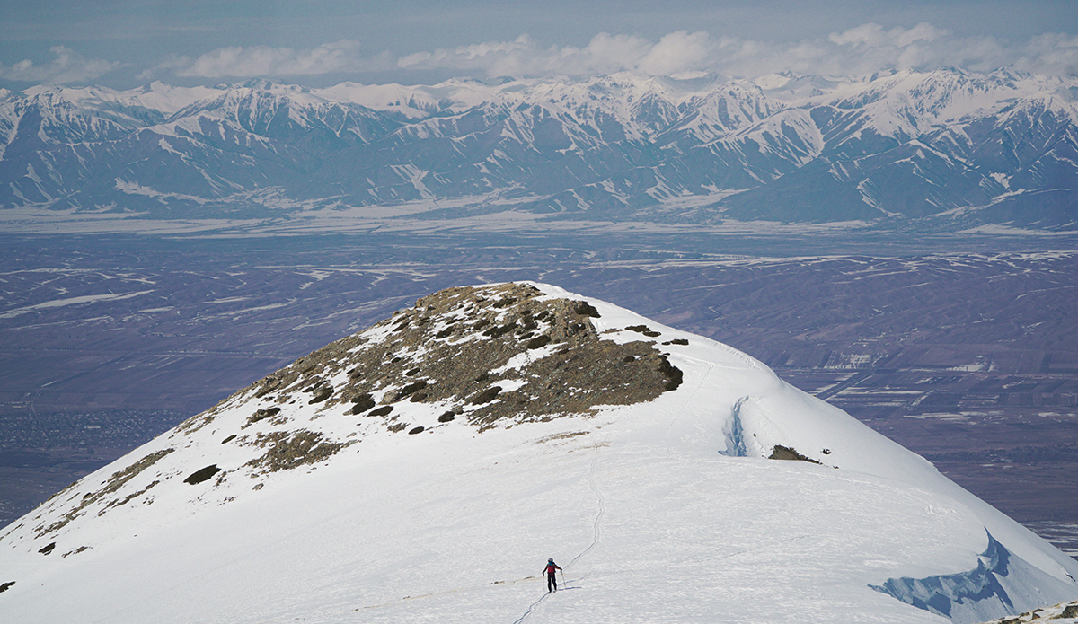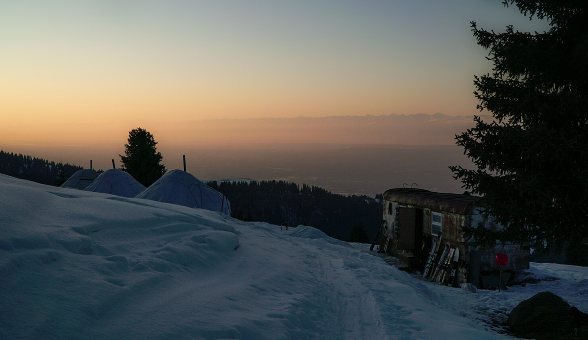 My initial draw to the country was the large, remote, and infrequently ridden peaks. A combination that is invariably appealing. As a splitboarding guide, I was lucky enough to connect with 40 Tribes, an outfitter that leads trips in Kyrgyzstan, France, Greenland, Chile and other locales. I landed in the capital city Bishkek following 34 hours of travel and was met by a driver who spoke about as much English as I speak Kyrgyz, who would take me on a six-hour journey to the opposite side of the country. Portions of the drive reminded me of my home in Idaho, others made me sure I was in a far-off land. The majority of the drive traversed the shores of Lake Issyk Kuhl, the second largest alpine lake in the world, and dropped me at the foot of the Tian Shan Mountains. The following morning, I started the skin from the village up to our yurt camp at 8,000 feet to meet my fellow guide, support crew, and settle in for the coming five weeks of work.