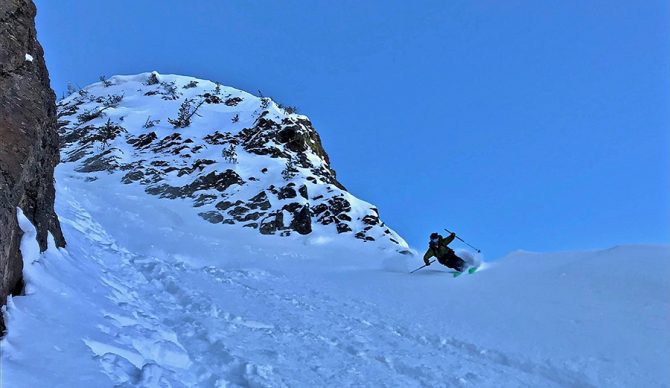 Our ability to make adjustments to plans based on what the mountains gave us played a major role in our success. The second morning provided us the opportunity to make an unplanned adjustment to climb and ski a couloir which would prove to be one of the most aesthetic lines of the trip and undoubtedly the best snow. So, we took full advantage! It wouldn’t be the last time we made an adjustment.