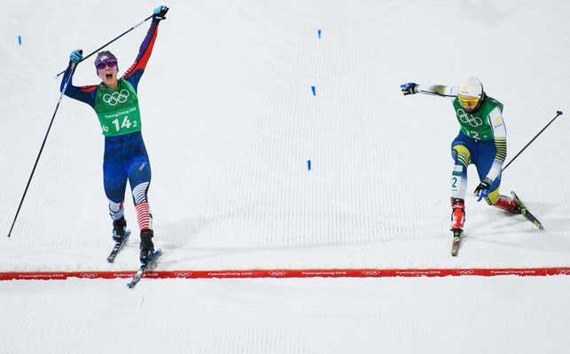 Pure adrenaline for @jessdiggs & @kikkanimal after winning @TeamUSA‘s first cross-country skiing #gold medal! https://t.co/ijxwbhtcCo pic.twitter.com/alnMNQOOvI