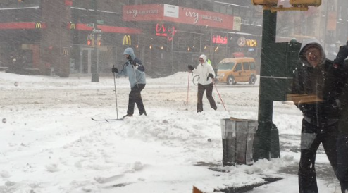 A named storm has shut down much of the Eastern Seaboard but it hasn’t stopped hardy outdoors people from enjoying the snow. Urban adventurers from New York City to Washington D.C. are turning to traditional forms of transportation, like skis, to traverse the streets of major urban areas during Winter Storm Jonas. It’s been a heavy weather event–causing some 18 deaths– with nearly 27 inches of snow falling in New York City alone. Snow has accumulated from the Gulf Coast to New England. Here are a few images from the last 24 hours, with shredders taking to the streets, matching conditions with the right equipment: