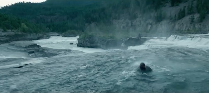 Tell us about Glass’s (DiCaprio’s) swim over the waterfall.