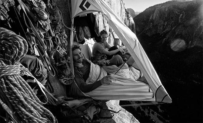 Tommy Caldwell and Kevin Jorgeson during a free ascent of the Dawn Wall Photo: Jimmy Chin for Black Diamond